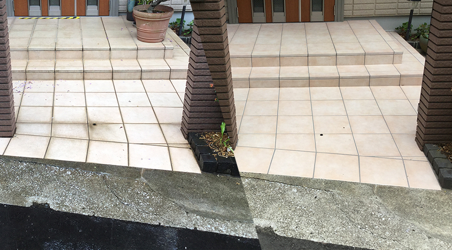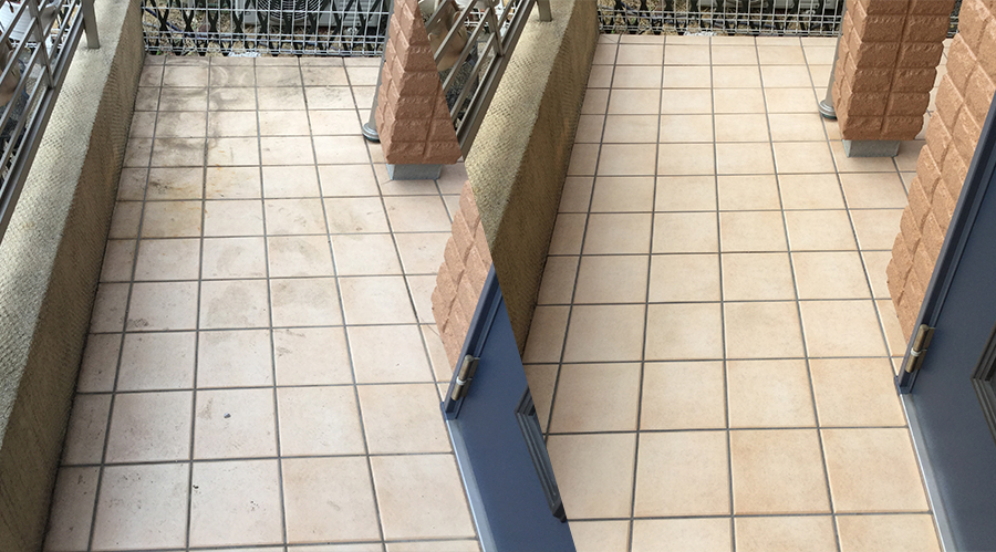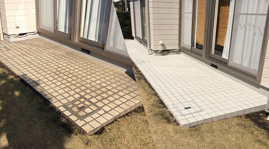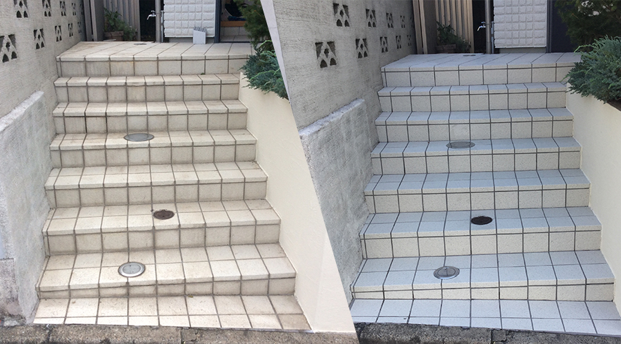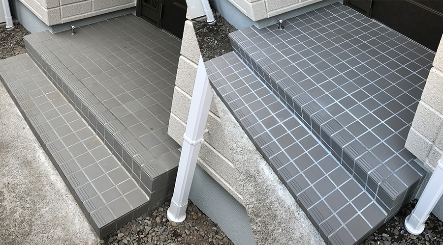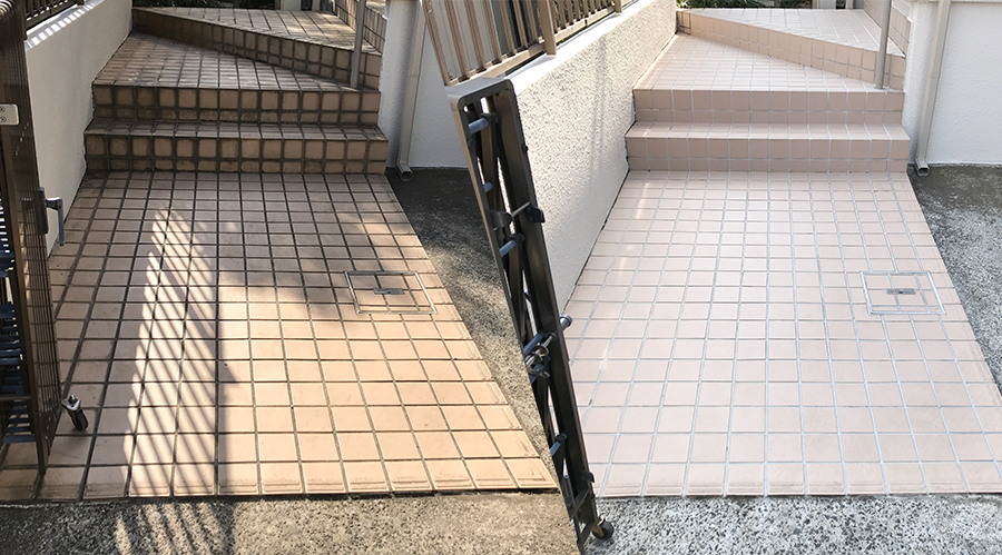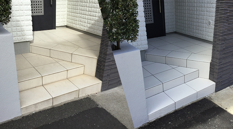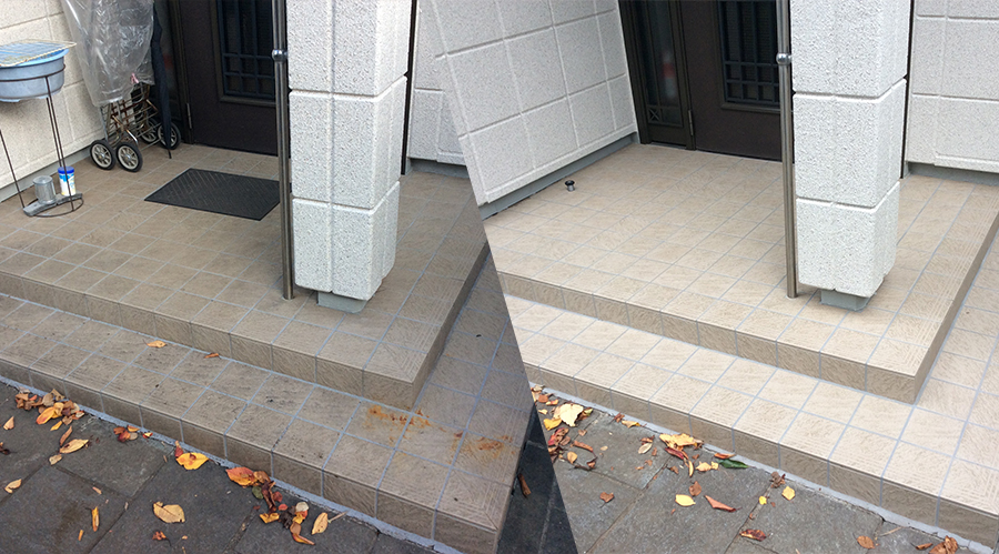玄関の内部や外部に使われている磁器質タイルは吸水率も非常に低く汚れにくい基材ですが、経年と共に様々な汚れが蓄積され、固着してしまうとなかなか汚れを取ることは難しいものです。