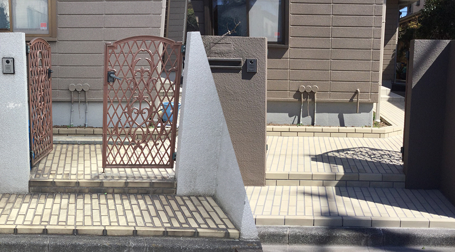玄関タイル以外にも、乱形石や門壁なども施工可能です。
